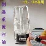 SP2空倉側面注油煙彈且可多次補油。其以高相容性、簡便補油與可靠防漏設計著稱,搭配透明倉體即時掌握油量,補充更直觀,無論日常使用或自行調配口味,都是兼顧實用性與靈活度的最佳選擇。